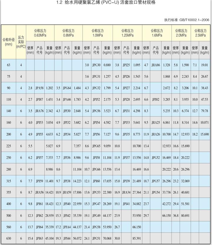PVC-U胶圈式给水管材: