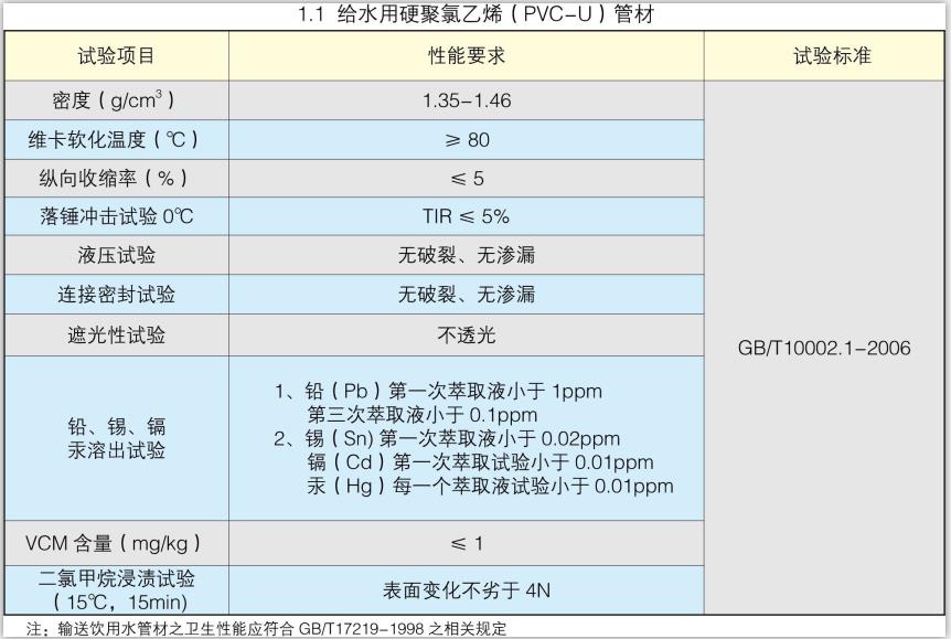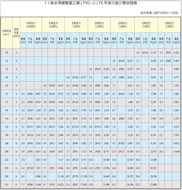 PVC-U胶圈式给水管材:
